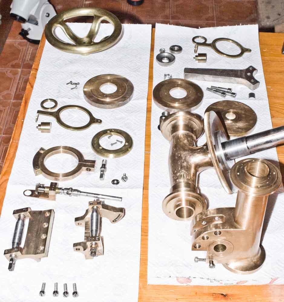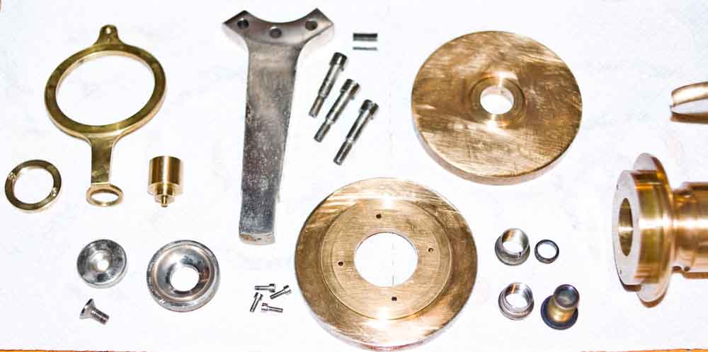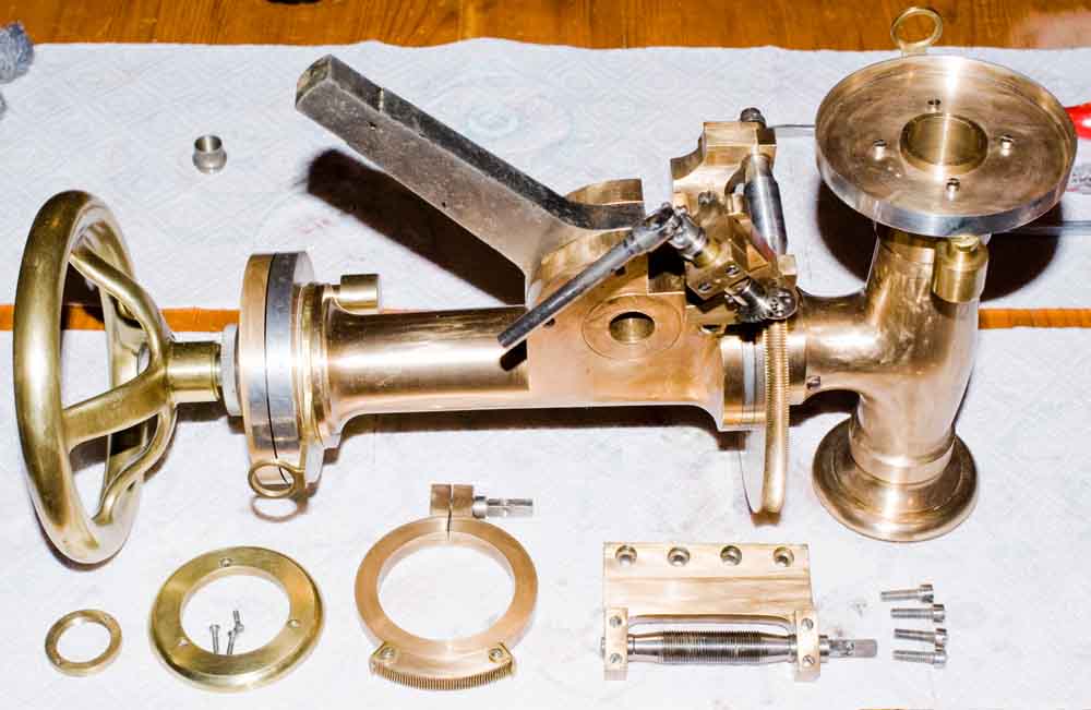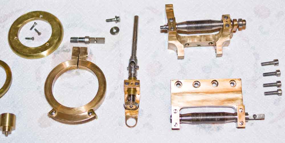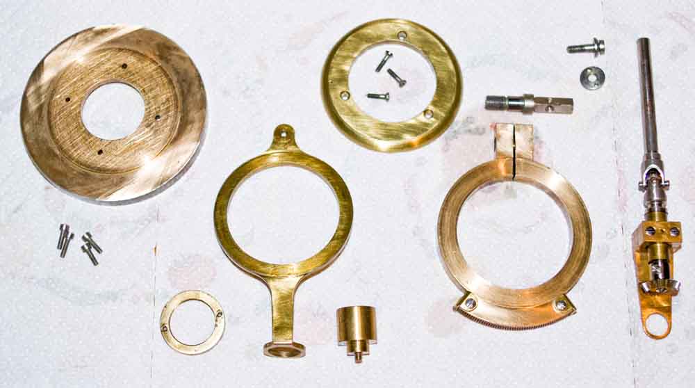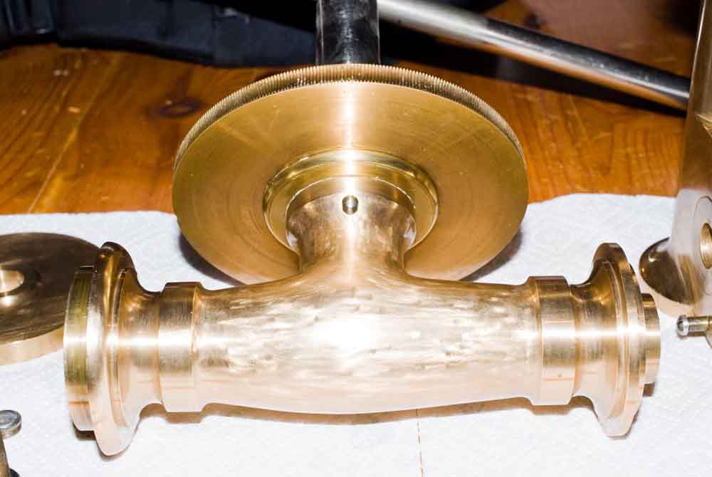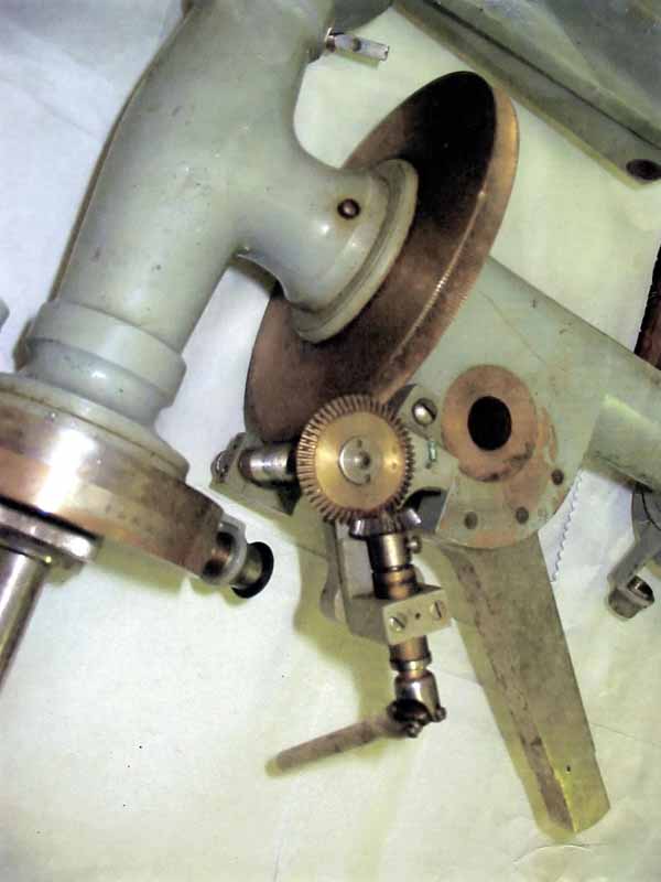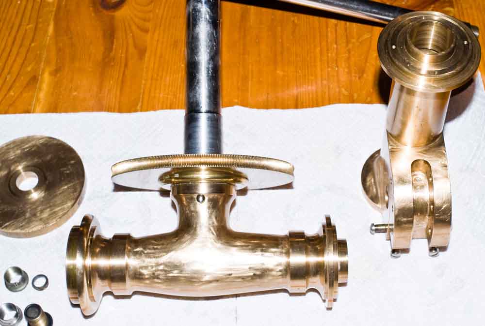 Here we have the balancing mechanism of the other readout eyepiece, the thrust for the Latitude adjustment, one of the two readout eyepieces open up with the top of one of the Setting Circle and the bottom of a Vernier. You'll get the whole picture when assembled.