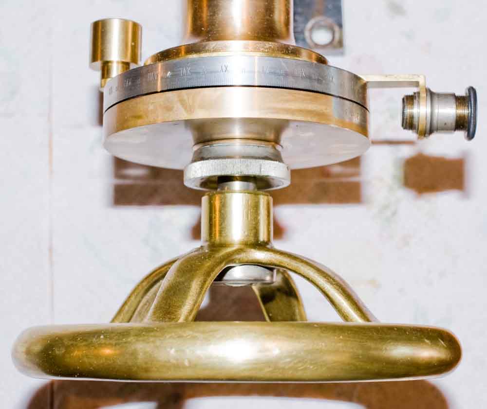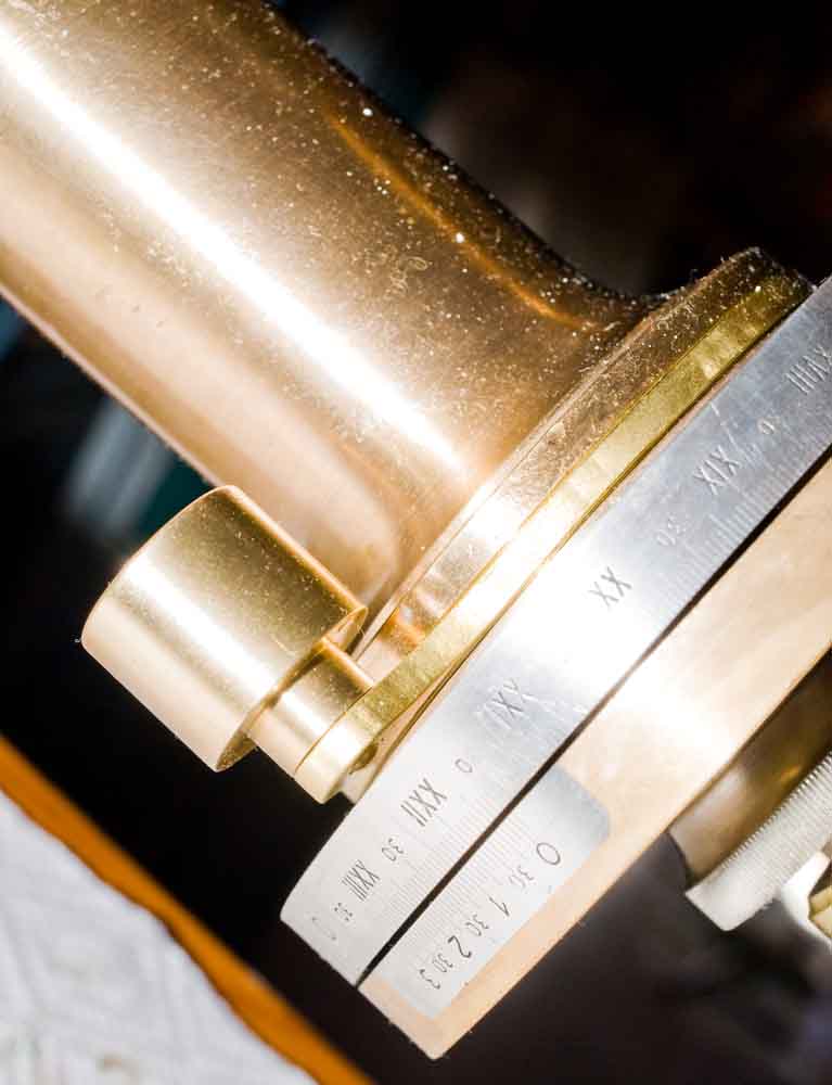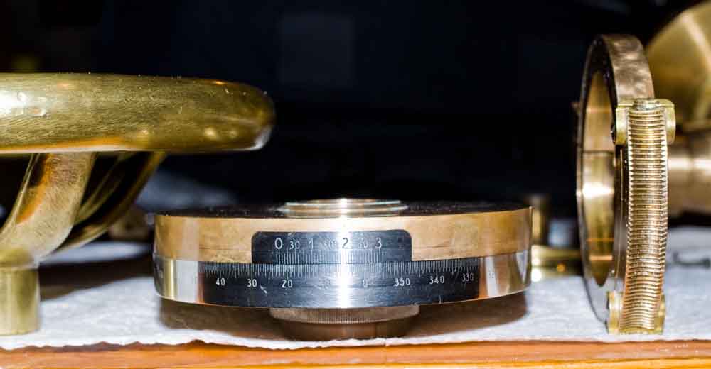 A close-up of the Setting Circle plus Vernier... when I finished cleaning the whole thing I realized that the numbers are actually hand-engraved on a plaque of solid Silver which is then nailed into the brass...!