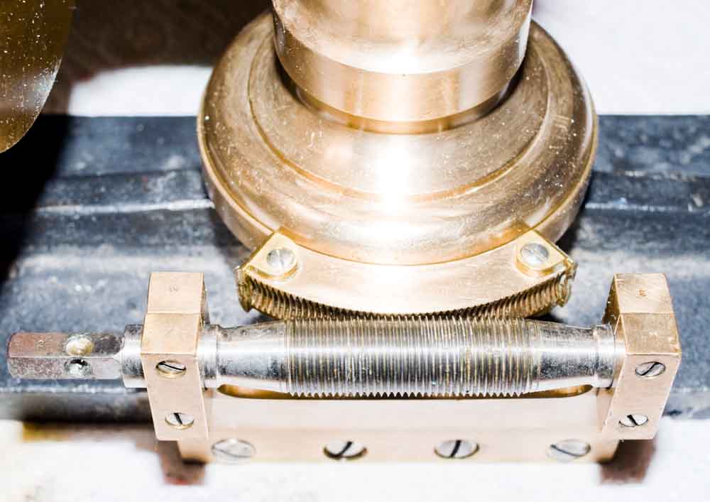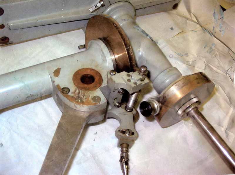 Now the Decl axis is in place. This is a detail of the fine movement which is controlled by two long brass bars (not shown), ono for locking-unlocking and the other for the fine movement itself.