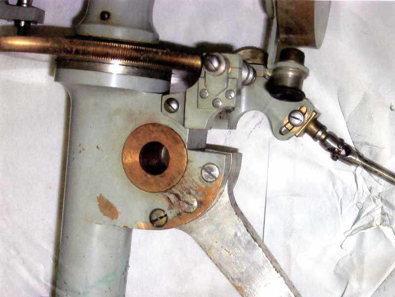 Here you may note the small counterweight that allows the readout eyepiece to be positioned on each part of the Coordination Circles and/or the Vernier, without moving from there as its fully counterbalanced... amazing...!
